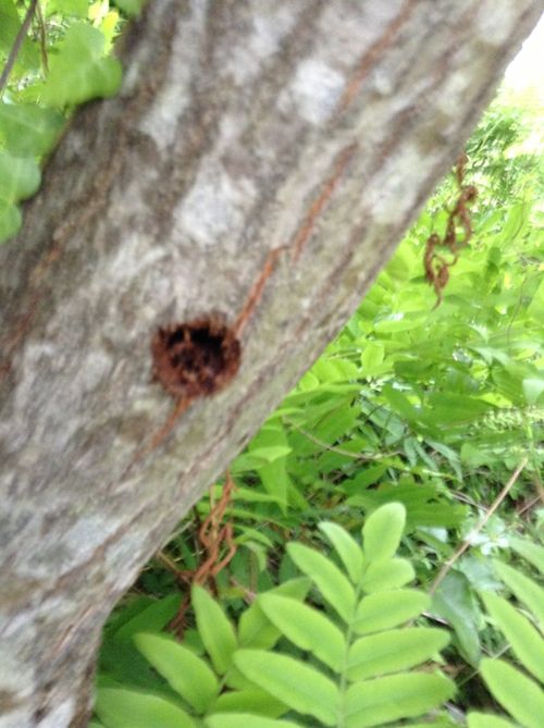 鳥?虫?人?謎は深まるばかりですが、とりあえず応急治療はしています。あとはここから水が入らないようにしないといけないでうs。穴のあいた木もとても気になります。